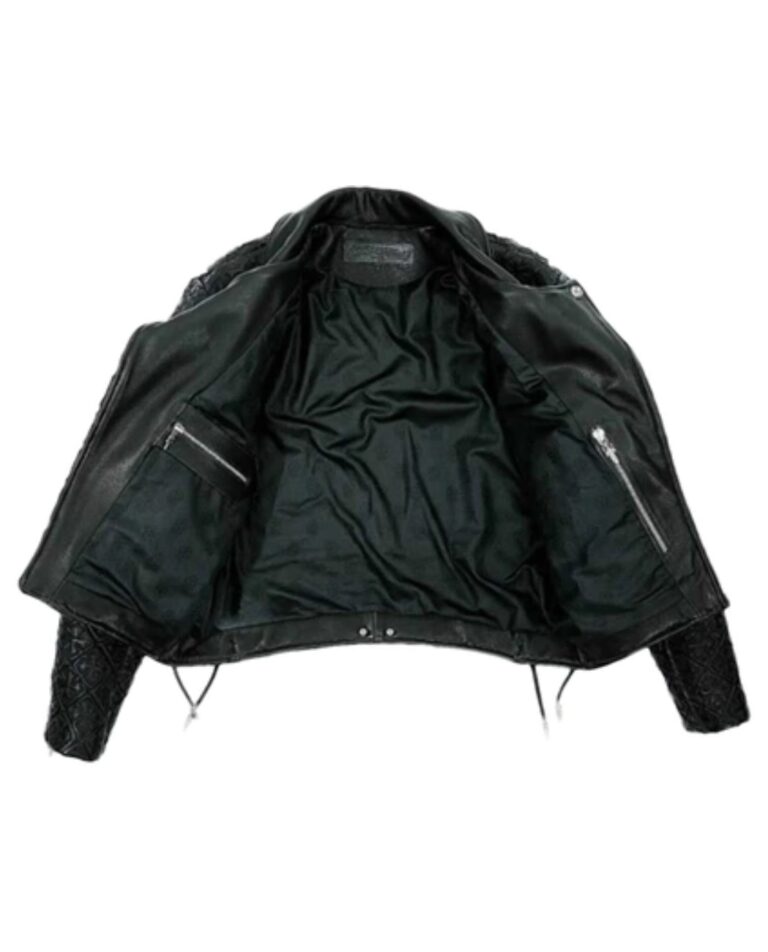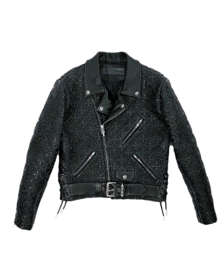 Stand out with the Chrome Hearts JJ Dean Mathematical Jacket, crafted from premium leather with signature mathematical cross patches and bold biker styling. Finished with sterling silver hardware and a structured JJ Dean fit, it embodies Chrome Hearts’ luxury rock-inspired aesthetic.